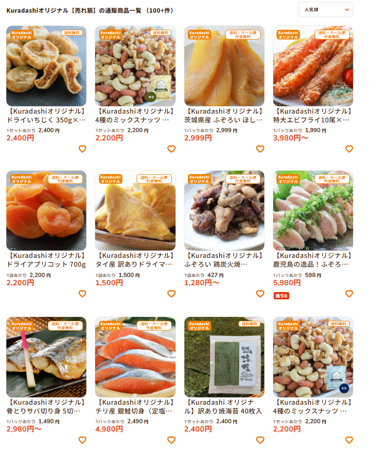 ・Kuradashiオリジナルなど利益が出そうな商品の拡大
