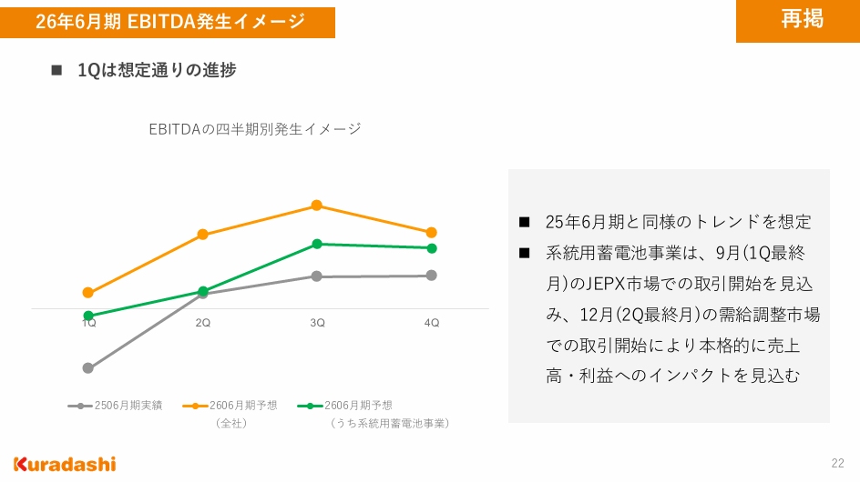 系統用蓄電池の寄与、日本郵便との連携による寄与は2Qでちょっとだけ、本格寄与は系統用蓄電池は3Qから、日本郵便は3Qから徐々にだと思います。