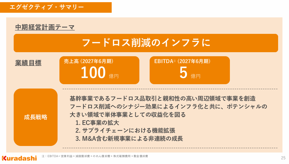 2027/6期に、売上高100億円。EBITDA 5億円。