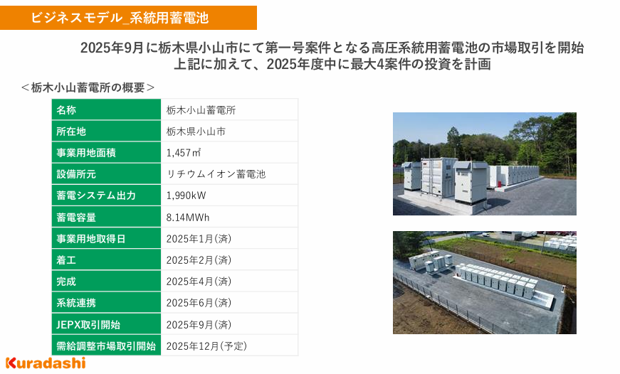 (開示事項の経過)系統用蓄電池事業「栃木小山蓄電所」 進捗状況(市場取引開始(予定))のお知らせ